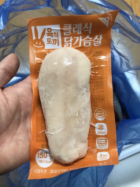 닭가슴살을 가장 저렴하게 사서 섭취하는 방법은 냉동 생닭가슴살을 사서 조리해서 먹는 게 가장 저렴합니다. 하지만 저는 선수도 아니고 트레이너도 아닌 일반인이기 때문에 간단하게 전자레인지에 돌려 먹을 수 있는 닭가슴살이 필요했습니다. 냉동 제품을 사서 소분해서 포장하는 것도 일이고 조리하는 것도 무척 귀찮은 일입니다. 그리하여 추천받은 "닭가슴살 육식토끼 닭가슴살" 입니다.