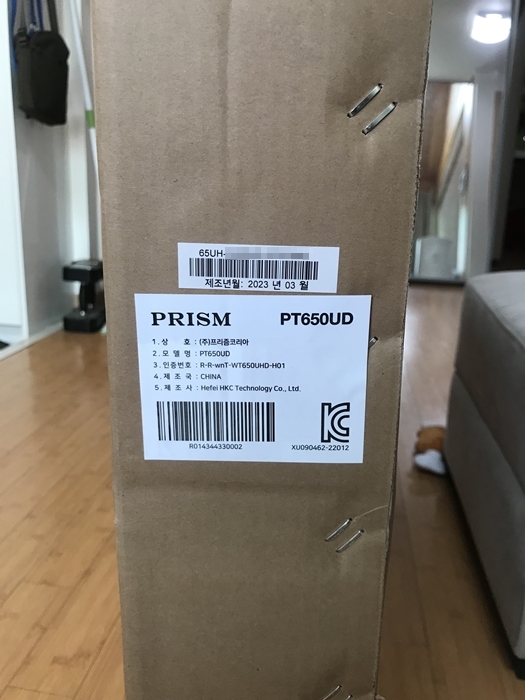 65인치 이상은 직접 설치가 불가하여 기사분이 방문하셔서 친절하게 설치를 해주셨습니다. 프리즘 코리아에서 제작된 프리즘(바이런) 티비는 제조년월은 2023년 3월입니다. 굉장히 최근에 만들어진 제품이라 좋았습니다.