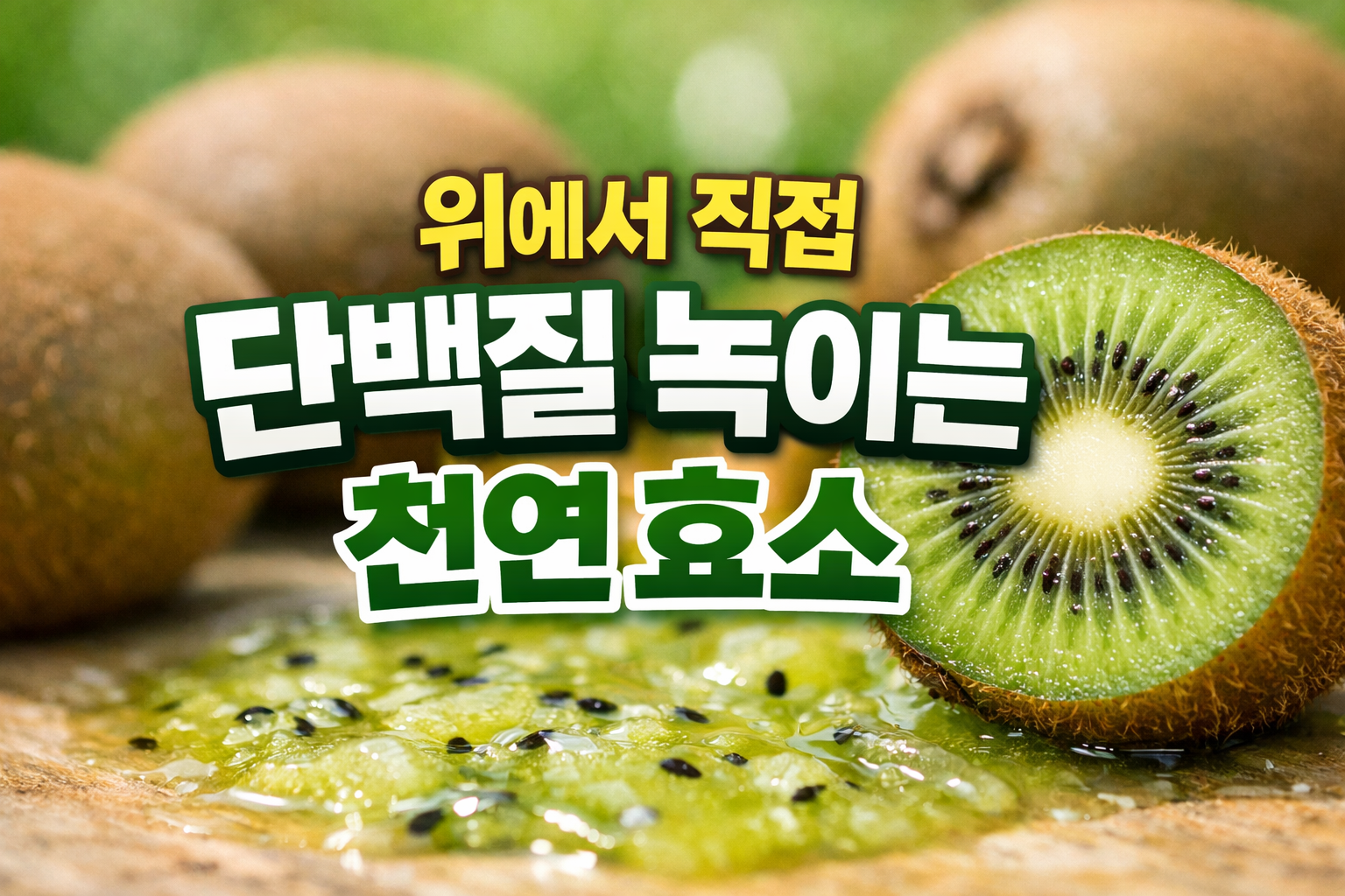 고기 재울 때 키위를 조금만 써도 고기가 부드러워지는 경험, 들어보셨죠? 그만큼 단백질 구조를 풀어주는 성질이 강하다는 뜻입니다. 같은 원리를 소화에서도 “단백질이 더 잘게 분해되도록 돕는다”로 이해하면 직관적입니다.