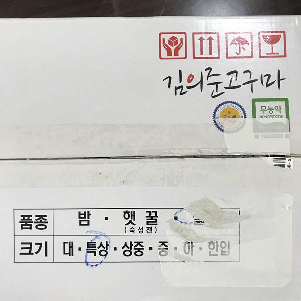 그 많고 많은 고구마 중에 김의준 고구마가 인기가 많은 이유는 무엇일까요? 당연히 맛입니다. 대형 마트나 동네 마트에서 구매한 고구마가 너무 맛이 없어서 버리지도 못하고 고구마 맛탕 같은 음식을 만들어서 먹은 경험이 있으시죠? 저 역시도 그런 경험이 있습니다. 실패 없는 김의준 고구마 소개를 시작하겠습니다. 이번에 구매한 김의준 고구마는 "꿀고구마"로 5kg짜리 중 크기 한 박스, 3kg짜리 특상 크기의 한 박스를 구매하였습니다.