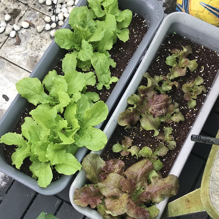 상추 키우기 2주차 사진입니다. 이제 상추 잎 색깔이 어느 정도 바뀌어서 육안으로도 적상추와 청상추가 구분이 가능합니다. 상추를 집 밖 작은 테라스에서 키우다 보니 일조량이 좋아서 그런지 베란다에서 키울 때 보다 빨리 자라는 것을 볼 수 있었습니다.