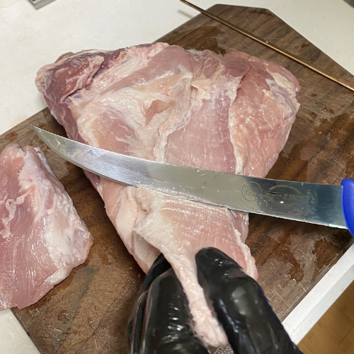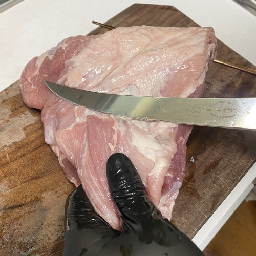 저는 냉동되지 않은 등갈비를 정육점에서 덩어리채 샀습니다. 보통 잘라서 판매하거나 구매한다고 하면 '잘라 드릴까요?'하고 물어보기도 합니다. 하지만 등갈비 바베큐를 할 예정이기 때문에 등갈비가 덩어리채 필요합니다. 사실 등갈비 손질은 그리 어렵지 않습니다. 스페어 립을 손질해보신 분들은 똑같이 하셔도 무방합니다. 해보신 적 없으신 분들은 1번 사진과 2번 사진처럼 튀어나온 지방과 살들을 잘라주고 3번 사진처럼 뒷면의 근막을 제거 젓가락을 이용해서 제거해주면 됩니다.