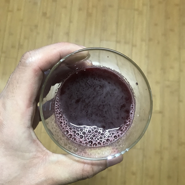 비트 루트 파우더는 굉장히 부드럽습니다. 스푼으로 뜰 때 가루가 날릴 정도로 부드럽고 입자가 고운 게 특징입니다. 먼저 물 200ml에 넣어서 섞어 보았습니다. 거품은 굉장히 적은 편이며 색은 빨간색 보다 와인 색상에 가깝습니다.