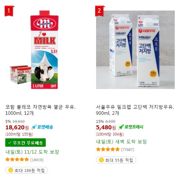 멸균우유 일반우유 가격비교