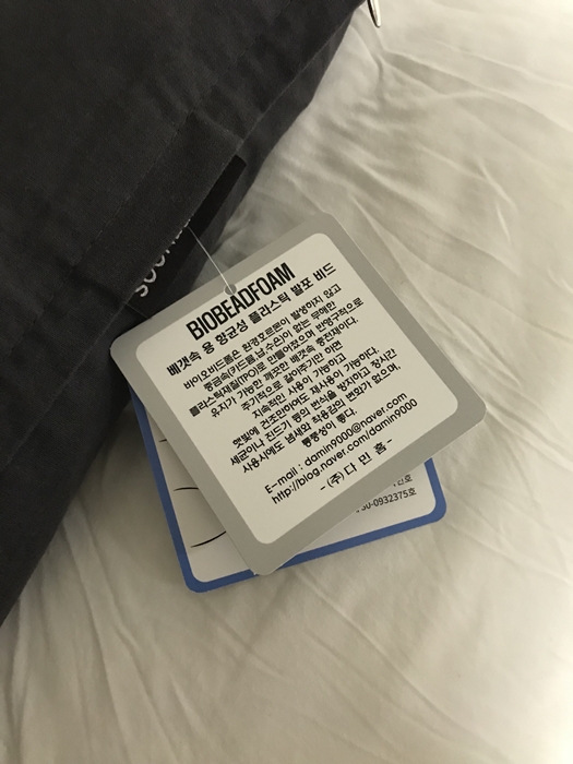 내부 충전재는 두 가지 중에 하나를 고를 수 있습니다. 메밀 충전재와, 바이오비드폼이라고 하는 플라스틱 재질로 만들어진 충전재가 있습니다. 메밀 배게는 시원하고 통기성이 좋지만 오래 사용하면 가루가 날리는 게 특징이기 때문에 저는 메밀과 통기성에서 차이가 없고 항균력이 좋은  바이오 비드폼은 선택했습니다.