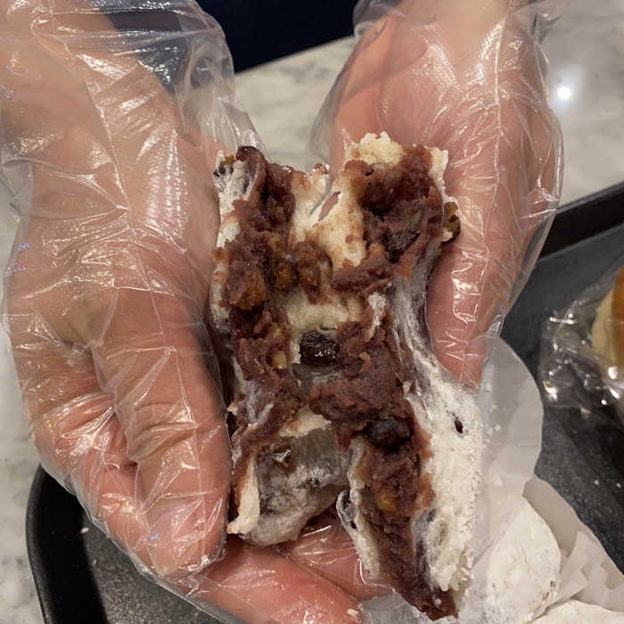 먼저 제가 태극당에서 자주 사 먹는 떡 중 하나인 대복떡입니다. 태극당에서 일반 찹쌀떡도 판매하고 있지만 대복떡이 훨씬 더 맛있습니다. 대복떡은 안에 견과류와 팥이 속을 꽉 채워서 쫀득한 게 굉장히 맛있습니다. 배가 고플 때 하나만 먹어도 포만감이 굉장히 오래가는 떡입니다.