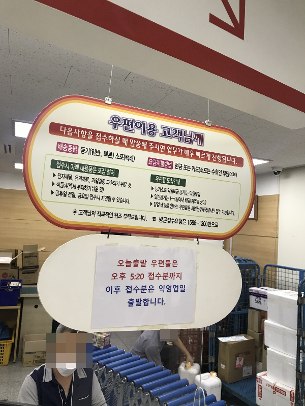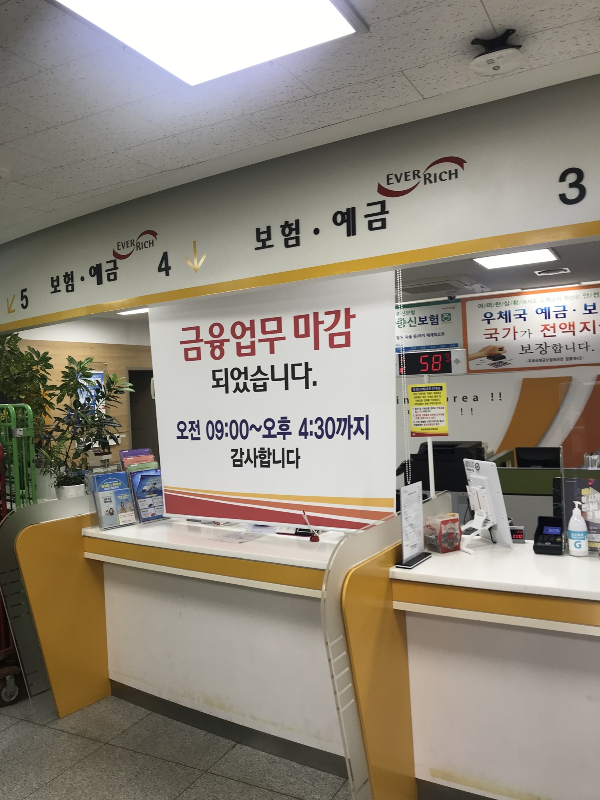 우체국은 보통 17시에서 17시 30분 정도에 당일 접수분이 마감된다.