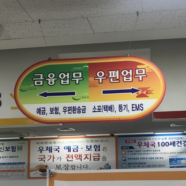 보통 우체국은 우편서비스와 금융서비스를 지원하고 있다.