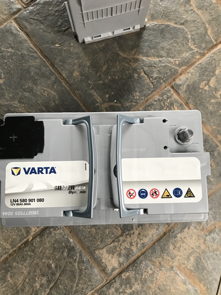2017년도에 12월에 제조된 바르타 AGM 배터리를 제거 후 2023년 1월에 제조된 배터리로 교체하였습니다. 아래는 교체될 새 배터리입니다. 자세히 보니 바르타(VARTA) 브랜드 라벨 위치가 바뀐 것을 보실 수 있습니다.