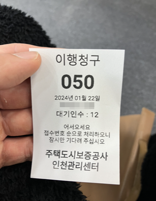 2024년 1월 15일에 임차권 등기명령이 결정문이 나왔고 2024년 1월 22일에 주택도시보증공사 인천관리센터에 방문하였습니다. 오전에 일찍 방문했는데 어찌나 사람이 많던지 두 시간이 넘게 기다려서 저의 순서가 되었습니다. 주택도시보증공사에서 이행청구는 따로 예약이 안되기 때문에 오픈런을 하시거나 시간적 여유를 충분히 두고 방문하시는 걸 추천드립니다. 나중에 먼저 오신 분께 물어보니 9시에 방문했는데도 앞에 6명이 기다리고 있었다고 합니다. 먼저 전세금보증보험 이행청구에 필요한 서류를 알려드리도록 하겠습니다.
