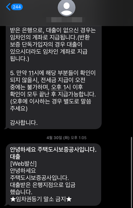 저는 기존의 대출 은행 담당자에게 전화를 했고 기존의 전세 대출이 모두 상환되었다는 이야기를 듣고 다시 새로운 대출 은행 담당자에게 전화를 걸었습니다.
