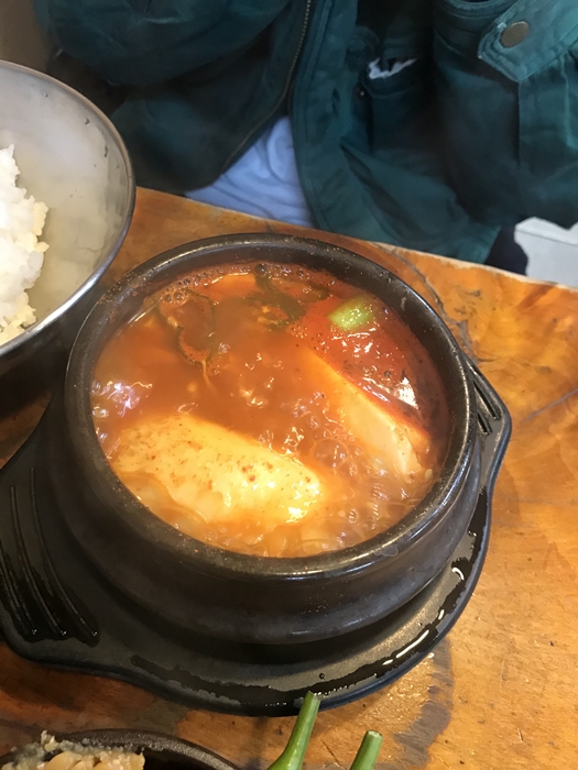 뚝배기집의 김치찌개는 깊은 맛이 나면서 굉장히 깔끔한 맛이 특징입니다. 멸치 육수가 베이스가 되는 것 같은데 요즘 시중에서 판매하는 달고 짜고 매콤한 김치찌개와는 거리가 멉니다. 시골 밥상에 어울리는 김치찌개이며 어릴 적 할머니가 끓여주시던 김치찌개가 생각나는 맛입니다. 순두부찌개는 살짝 매콤한 맛이 돌며 부드러운 순두부를 건져서 후후 불어 먹는 재미가 있는 찌개였습니다. 순두부찌개 치고는 간이 강하지 않아서 비빔밥과 굉장히 잘 어울렸습니다.