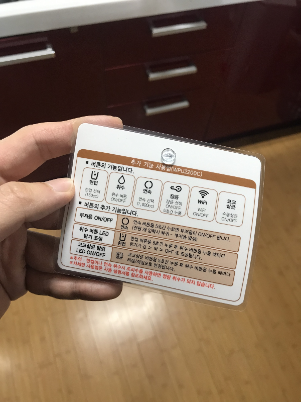 예전 구형 정수기 모델과 다르게 터치감이 굉장히 우수 해졌다.